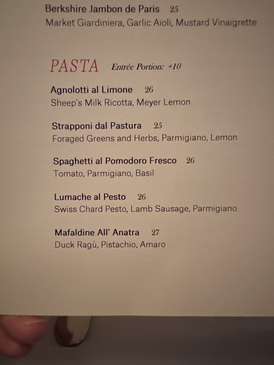 “ I had an excellent dinner with an old friend recently. My friend lives overseas and came to New York for a work trip, I chose this iconic place to treat her and it did not disappoint. We shared the zucchini to start, it was refreshing and bright, followed by the agnolotti, which was so good I had to ask for more bread just to wipe the plate clean. The tilefish and lamb were both cooked perfectly and full of flavor. Sommelier David helped us pick a half bottle of Burgundy red that paired beautifully with the whole meal, and our server suggested the plum florentine for dessert, which ended things on a high note. Great food, thoughtful service, and a warm atmosphere. I’ll definitely be back soon. ”